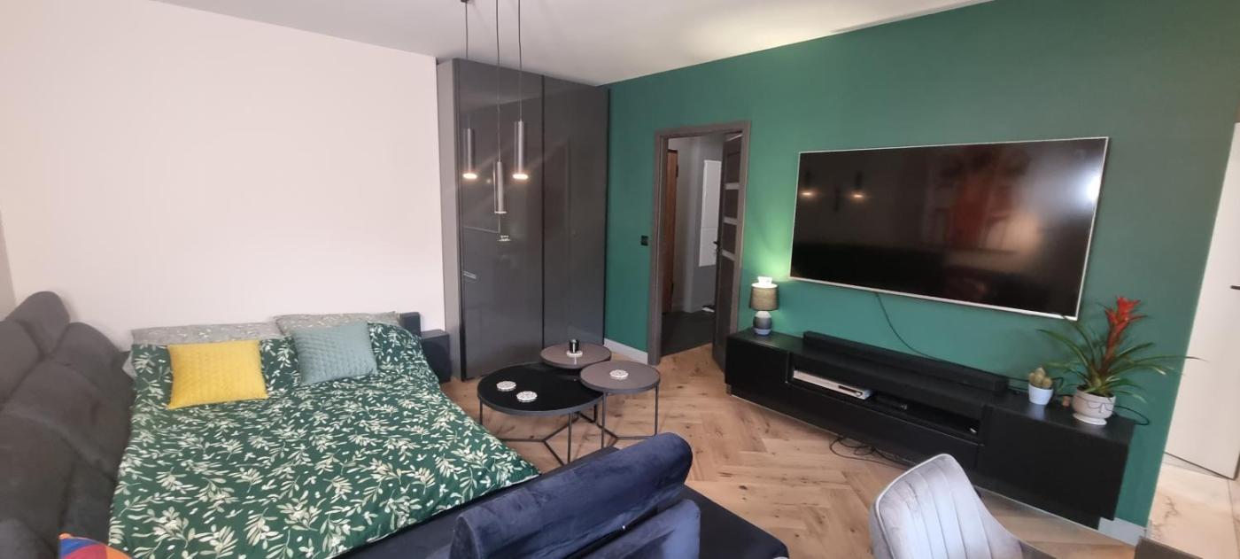 Studio z balkonem. Guests can make meals in the kitchenette that has a stovetop, a refrigerator, a dishwasher and kitchenware. The studio features a washing machine, a tea and coffee maker, a balcony with garden views as well as a private bathroom boasting a hairdryer. The unit has 1 bed. Studio - 2 osobowy. Powierzchnia pokoju ok.: 35 mkw.