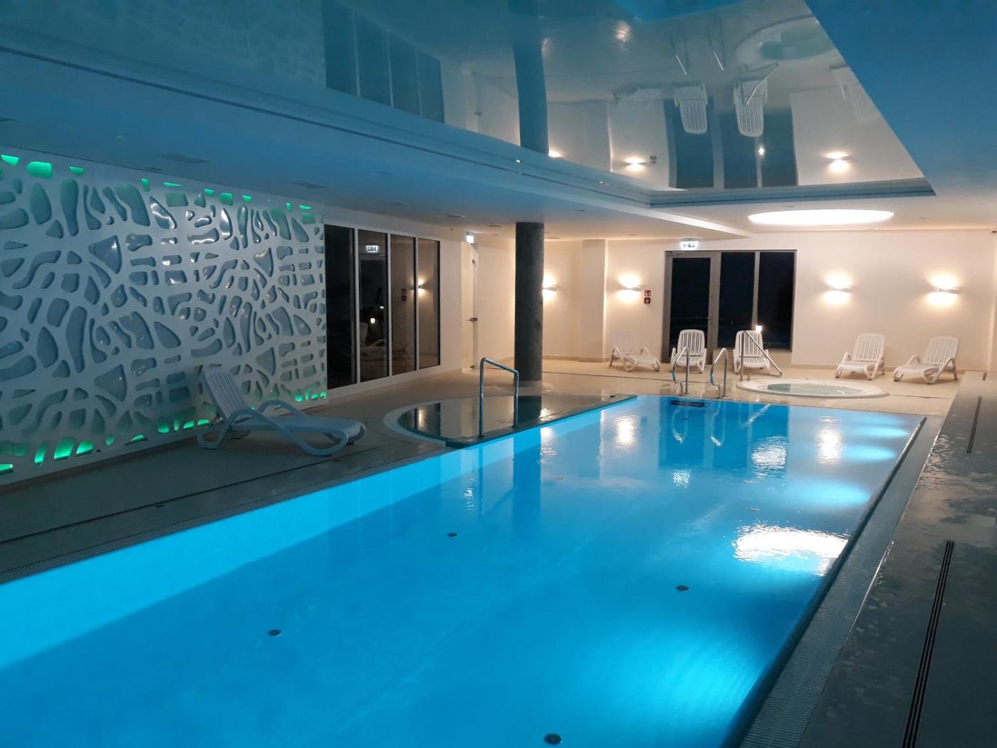 Zaplecze odnowy biologicznej obiektu SeaGdansk @ Waterlane Island obejmuje kryty basen, saunę i wannę z hydromasażem.