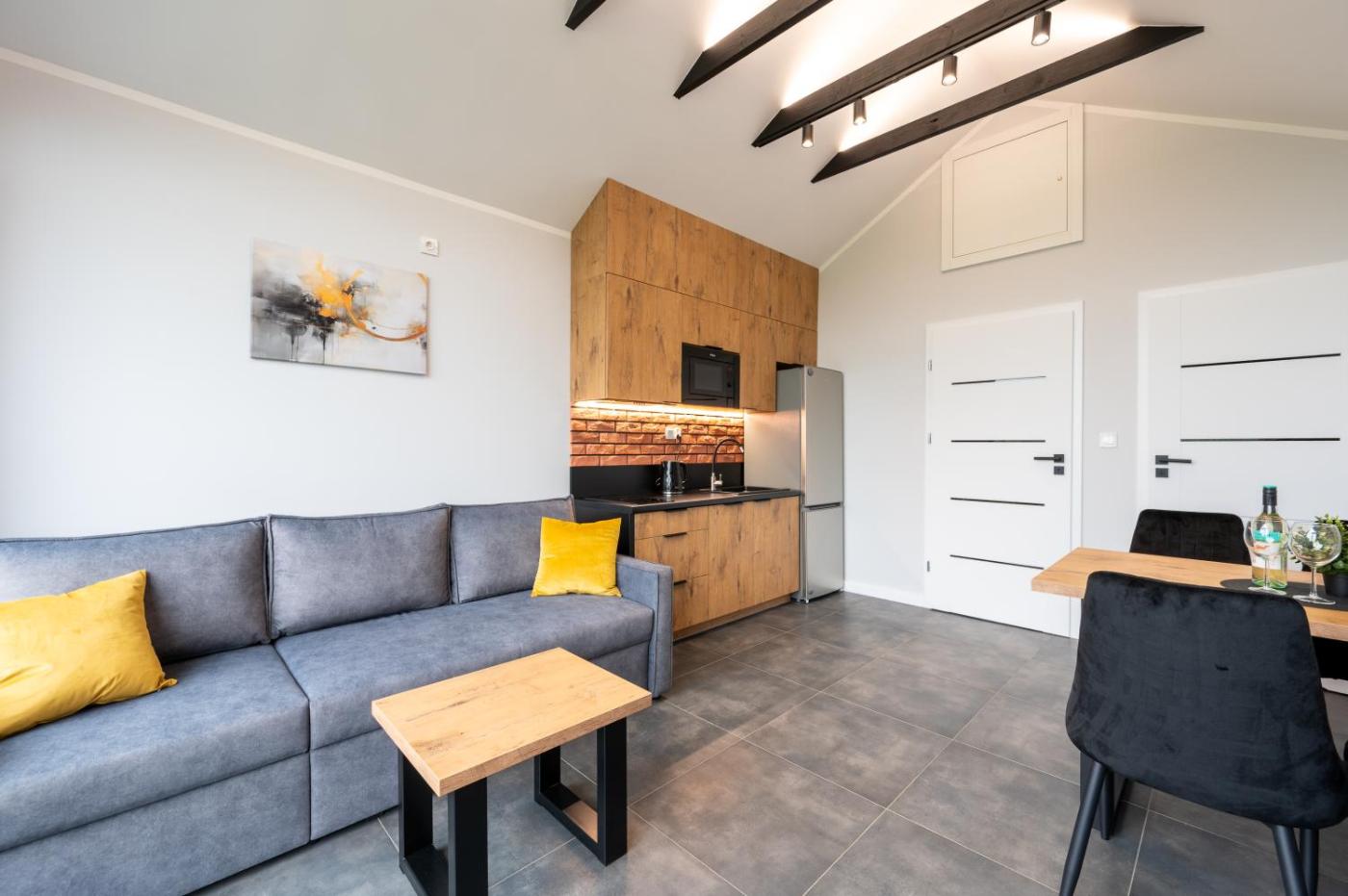 Dom z 1 sypialnią. Boasting a private entrance, this air-conditioned holiday home comes with 1 living room, 1 separate bedroom and 1 bathroom with a shower and a hairdryer. Guests will find a stovetop, a refrigerator, a dishwasher and kitchenware in the well-equipped kitchen. The holiday home also includes a barbecue. Featuring a terrace with garden views, this holiday home also features a seating area and a flat-screen TV with streaming services. The unit has 3 beds. Dom wakacyjny - 4 osobowy. Powierzchnia pokoju ok.: 35 mkw.