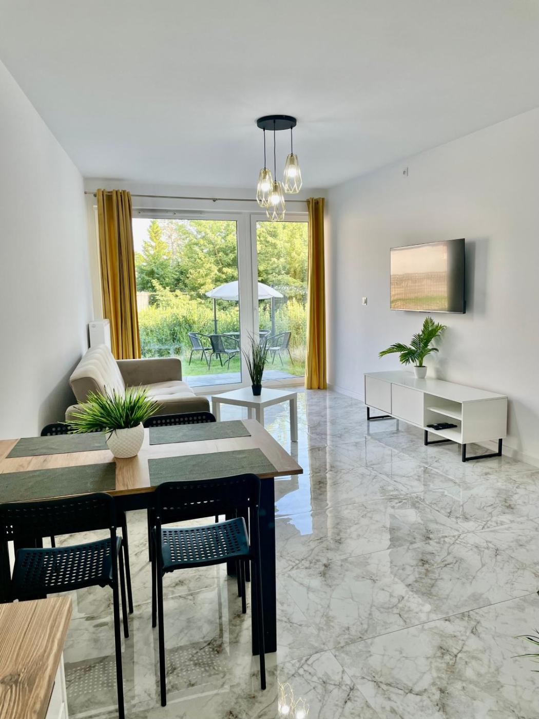 Apartament z 1 sypialnią. In the kitchen, guests will find a stovetop, a refrigerator, kitchenware and a microwave. Boasting a terrace with garden views, this apartment also offers a private entrance and a flat-screen TV. The unit has 3 beds. Apartament - 4 osobowy. Powierzchnia pokoju ok.: 46 mkw.