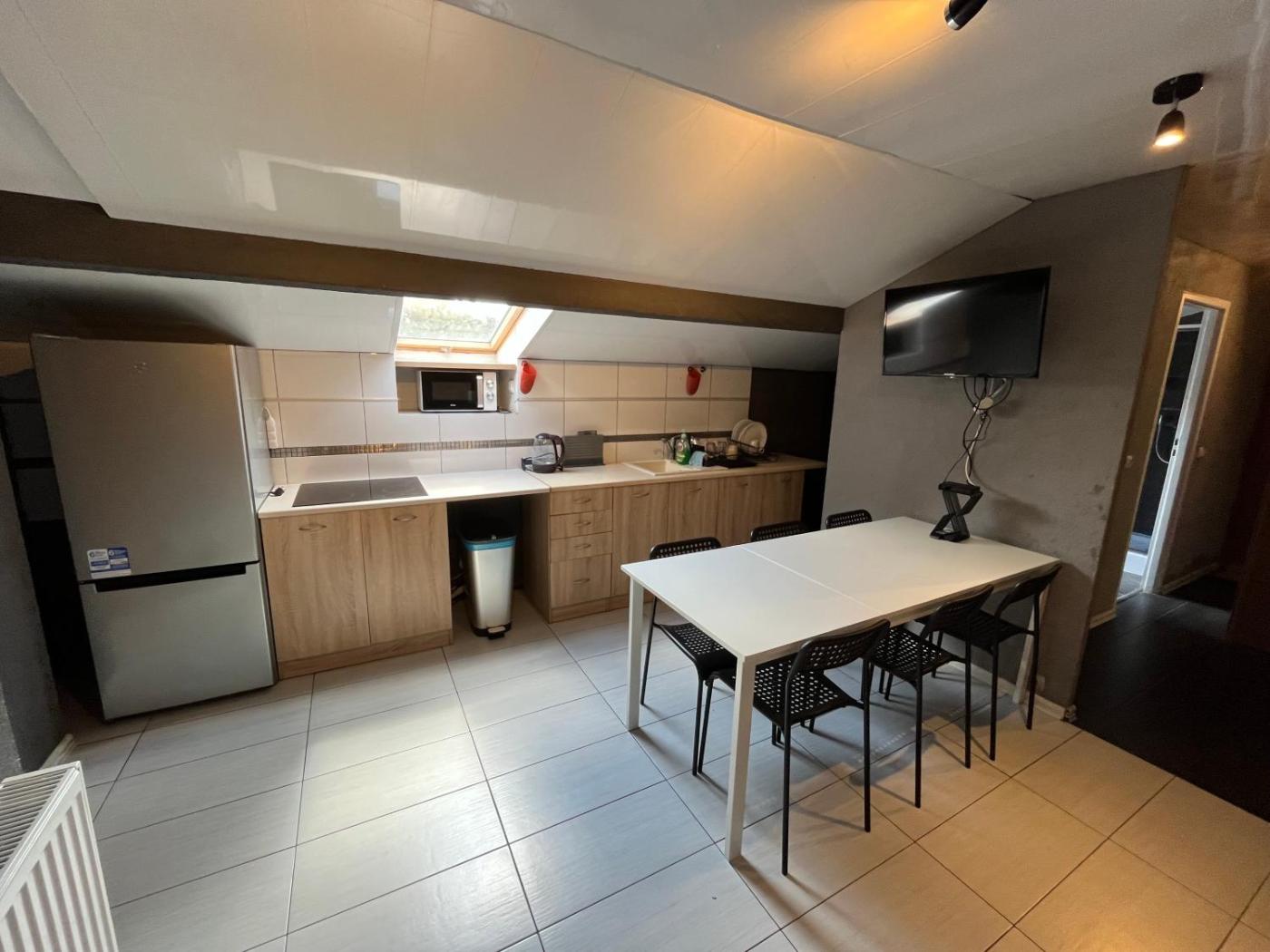 Studio. Meals can be prepared in the kitchen, which is equipped with a stovetop, a refrigerator, kitchenware and a microwave. The spacious studio provides a dining area, a wardrobe, as well as a private bathroom featuring a shower and a hairdryer. The unit offers 14 beds. Studio - 14 osobowy. Powierzchnia pokoju ok.: 70 mkw.