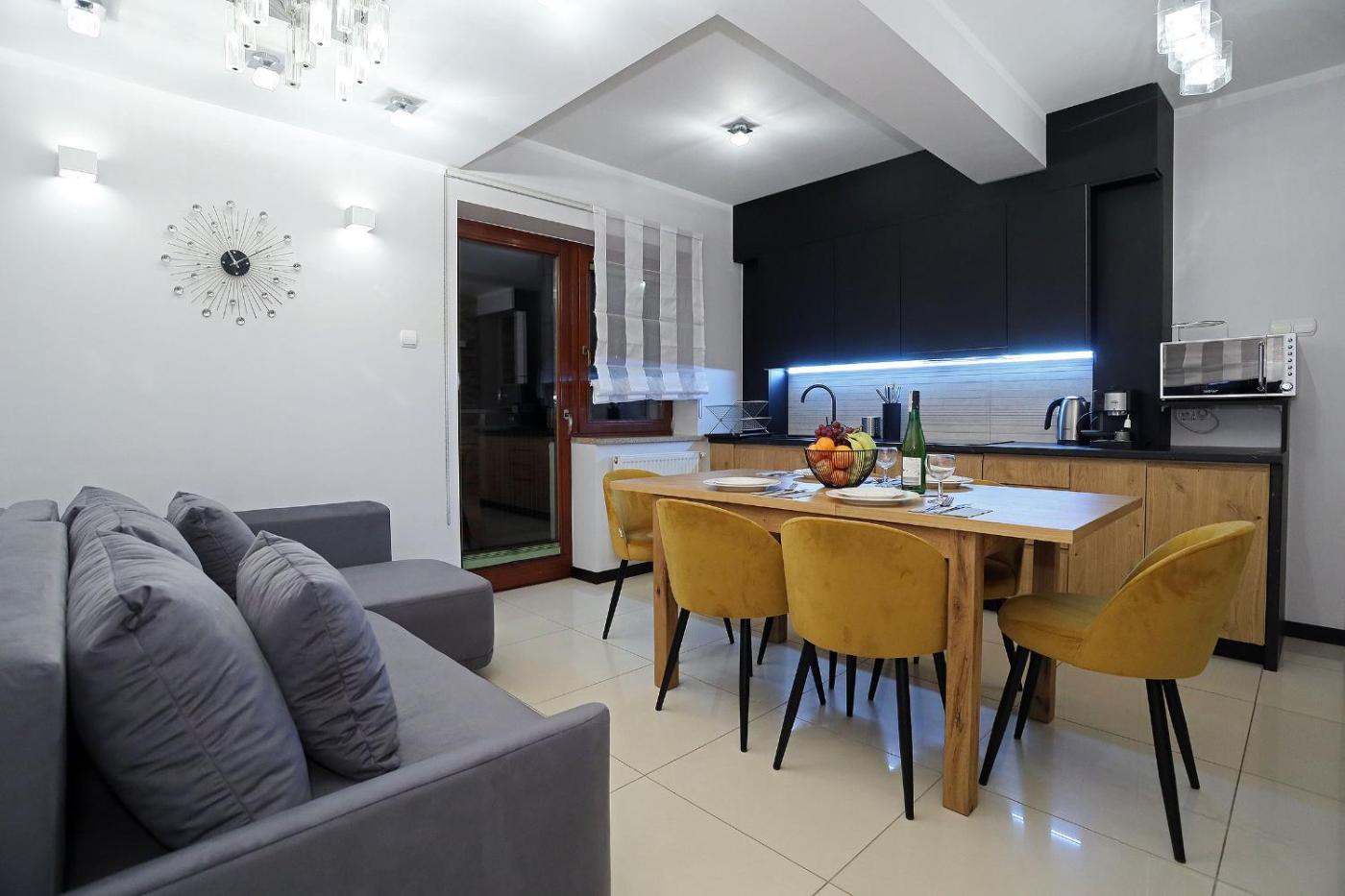 W apartamencie do dyspozycji gości przygotowano kilka sypialni (3), jadalnię, aneks kuchenny z lodówką oraz salon. Wyposażenie obejmuje też telewizor z płaskim ekranem z dostępem do kanałów kablowych. W apartamencie zapewniono ręczniki i pościel.