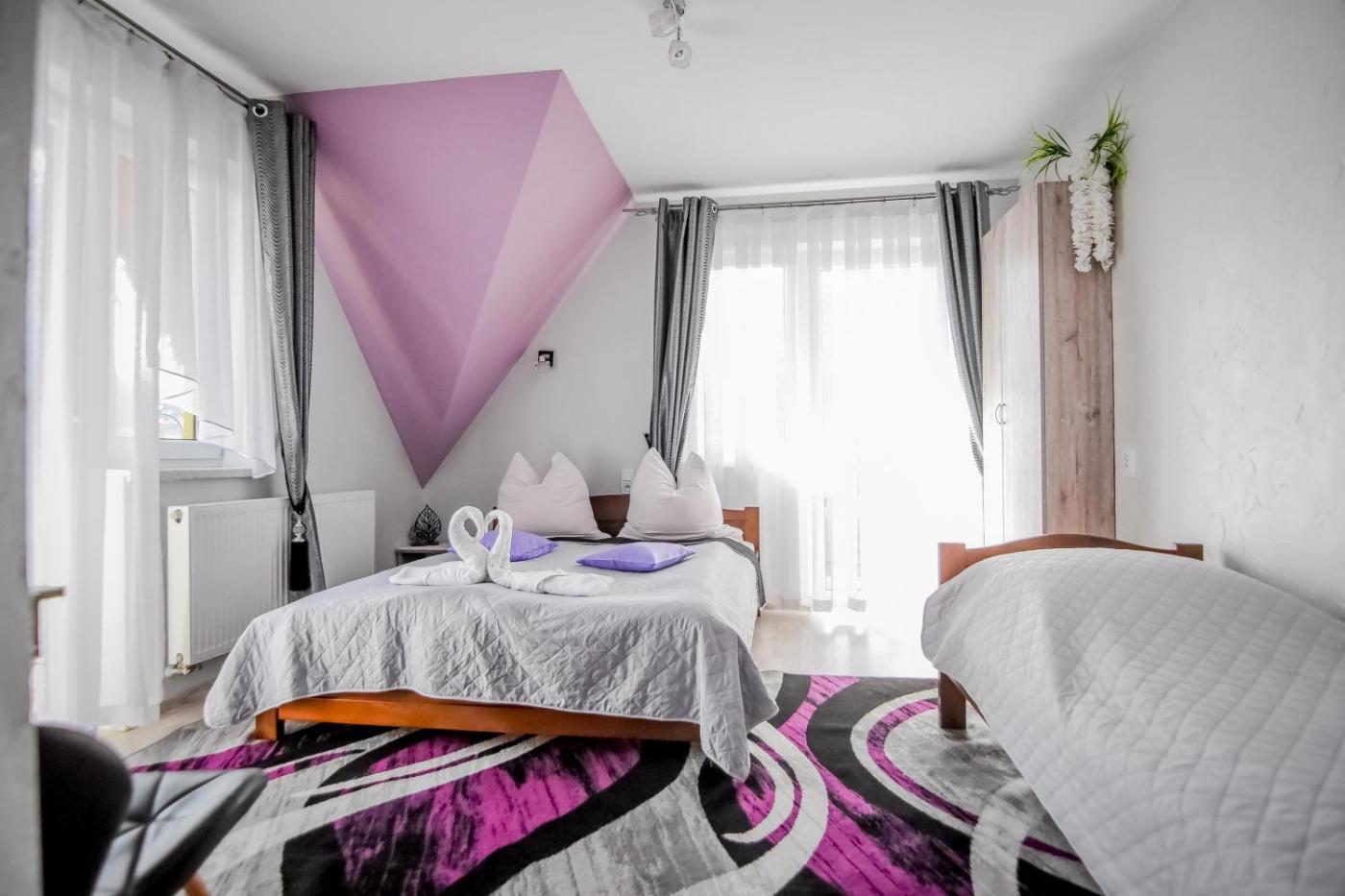 Pokój Dwuosobowy z balkonem. The double room provides a tea and coffee maker, a seating area, as well as a private bathroom featuring a shower and a hairdryer. This double room features a dining area, a wardrobe, a flat-screen TV and a balcony. The unit offers 2 beds. Pokój Dwuosobowy - 2 osobowy. Powierzchnia pokoju ok.: 17 mkw. ;